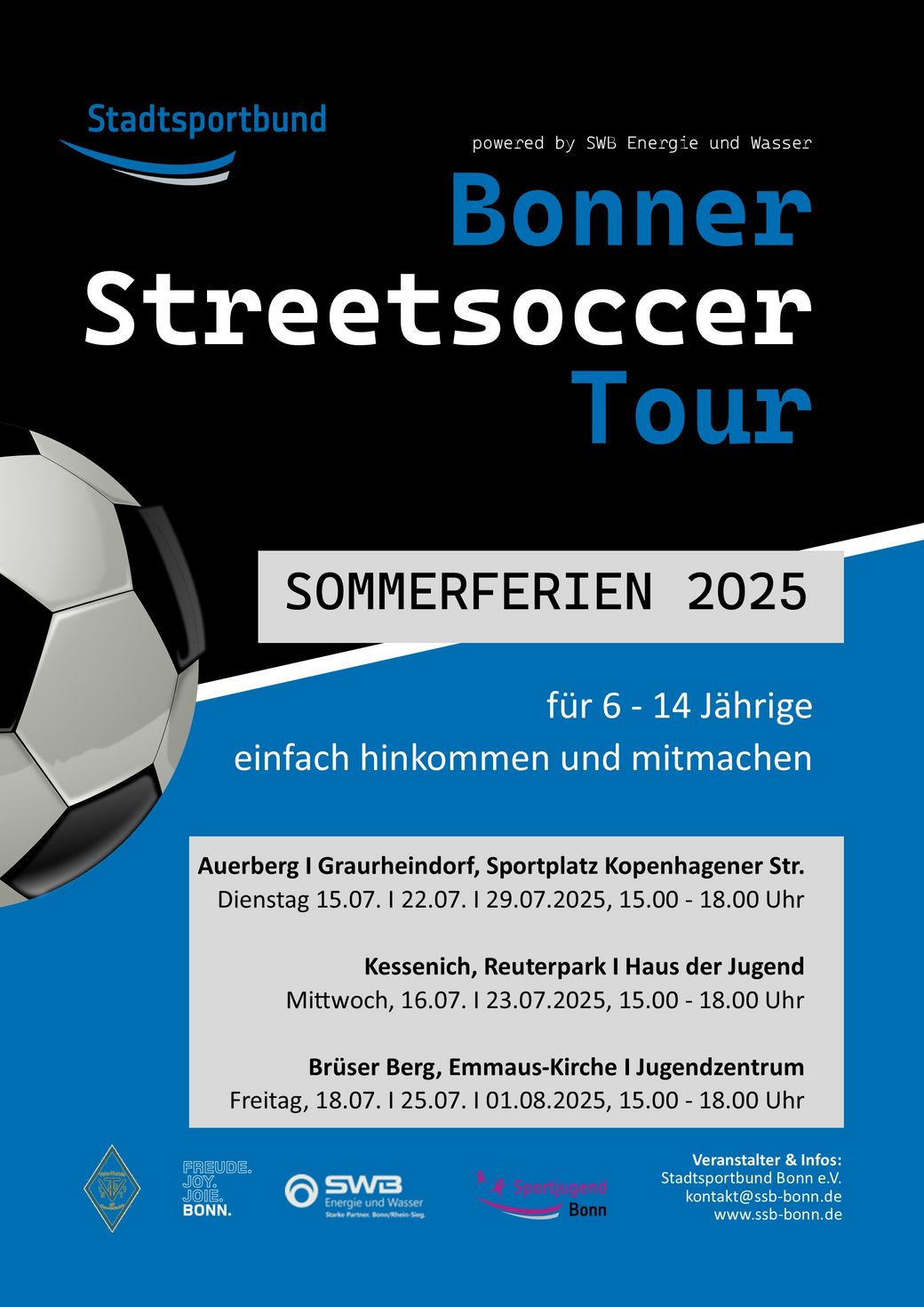 Die Bonner Streetsoccer Tour findet in den Sommerferien statt und richtet sich an Kinder und Jugendliche im Alter von 6 – 14 Jahren, die miteinander Fußball spielen.